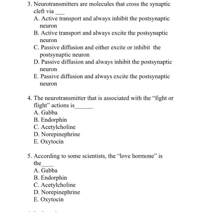 Solved 3 Neurotransmitters Are Molecules That Cross The Chegg Com